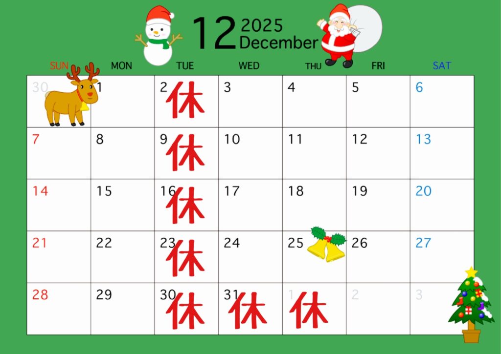 12月のお休み 2025年11月24日 最終更新日時 : 2025年11月24日 phm83490 年末にむかいお忙しいと思いますが ご予約はお早めにお取りください 特に早い時間帯はご希望に沿えない場合が増えると思います。 \ 最新情報をチェック /